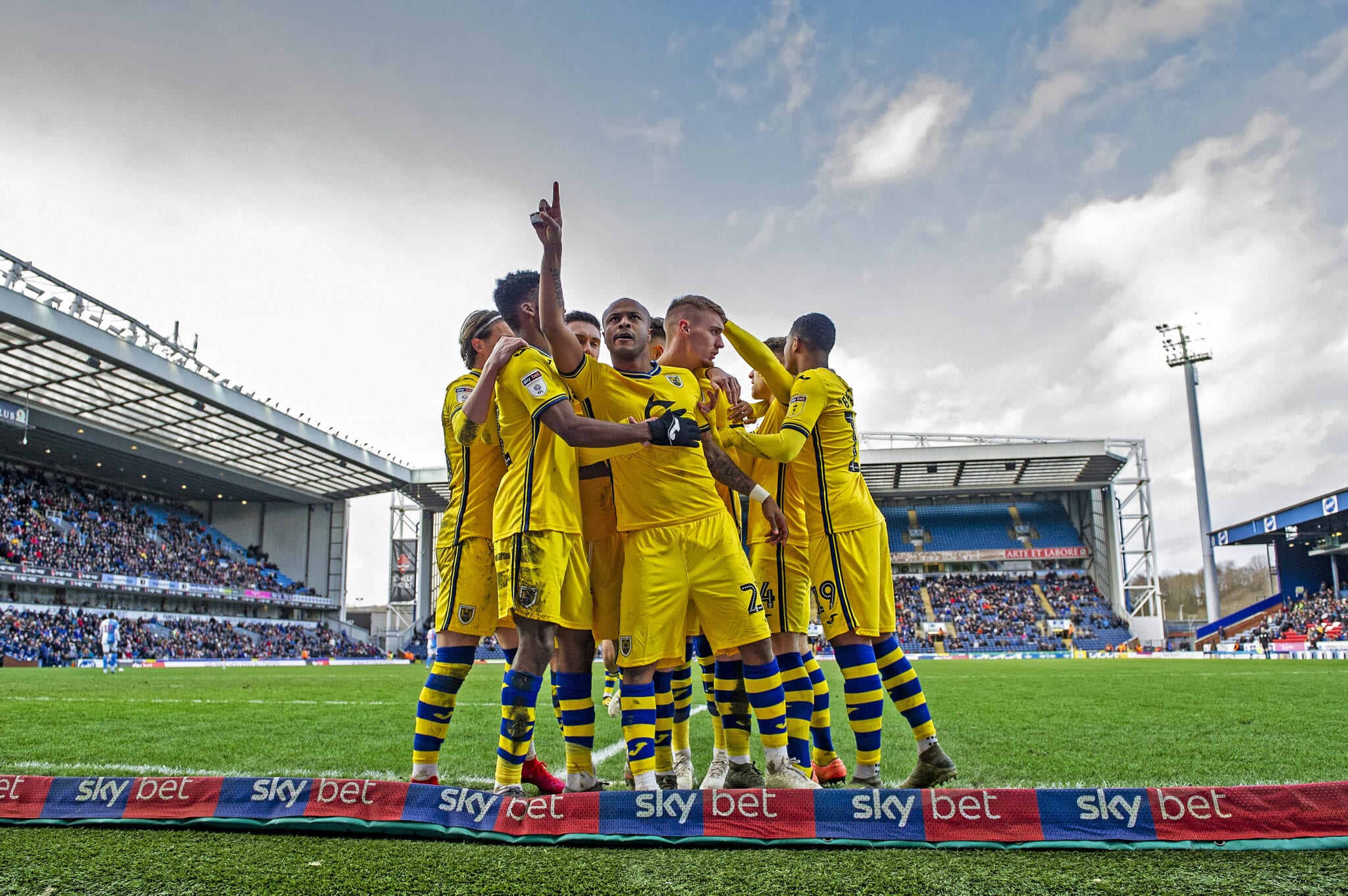 Andre Ayew of Swansea City celebrates scoring his side’s second goal during the Sky Bet Championship match between Blackburn Rovers and Swansea City at Ewood Park on in Blackburn, England, UK. Saturday 29 February 2020